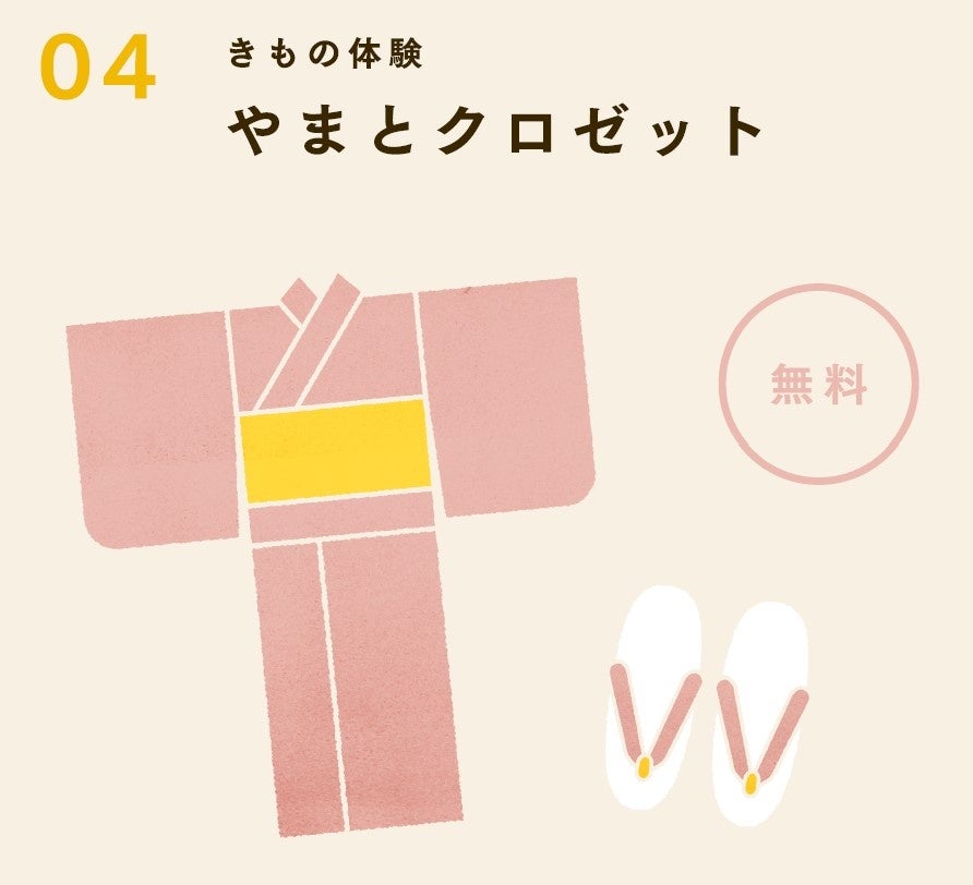 その他にも無料コーナーも充実。やまとオリジナルの新作商品などを自由に見て触れて、着ていただける「やまとクロゼット」や着物の構造を学べるペーパークラフトのプレゼントもございます。また、“誰かに是非着て欲しい”という優しい想いでご自宅に眠る着物を持ち寄り、気に入った着物はお持ち帰りいただける「きものポスト(※2)」など、様々なプログラムにて皆さまをお待ちしております。