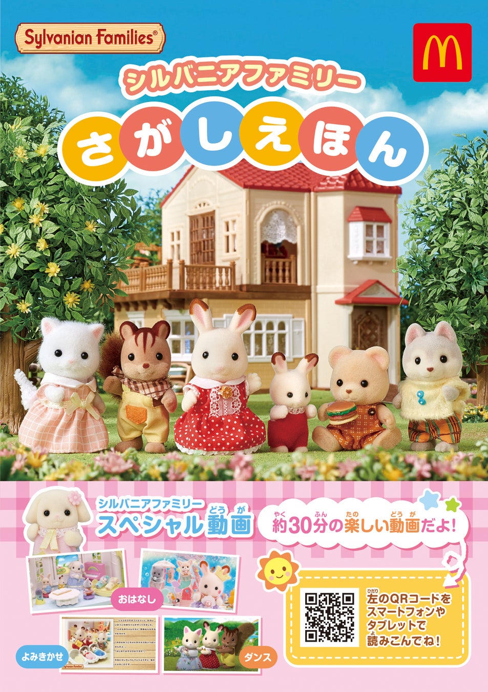さらに、4⽉15⽇(⼟)・16⽇(⽇)の2⽇間は、ハッピーセット「シルバニアファミリー」を1セットご購⼊につき「シルバニアファミリー さがしえほん」をプレゼント。さらに、4⽉29⽇(土・祝)・30⽇(日)の2⽇間は、ハッピーセット「シルバニアファミリー」を1セットご購⼊につき「シルバニアファミリー おともだちポスター」をプレゼントいたします。