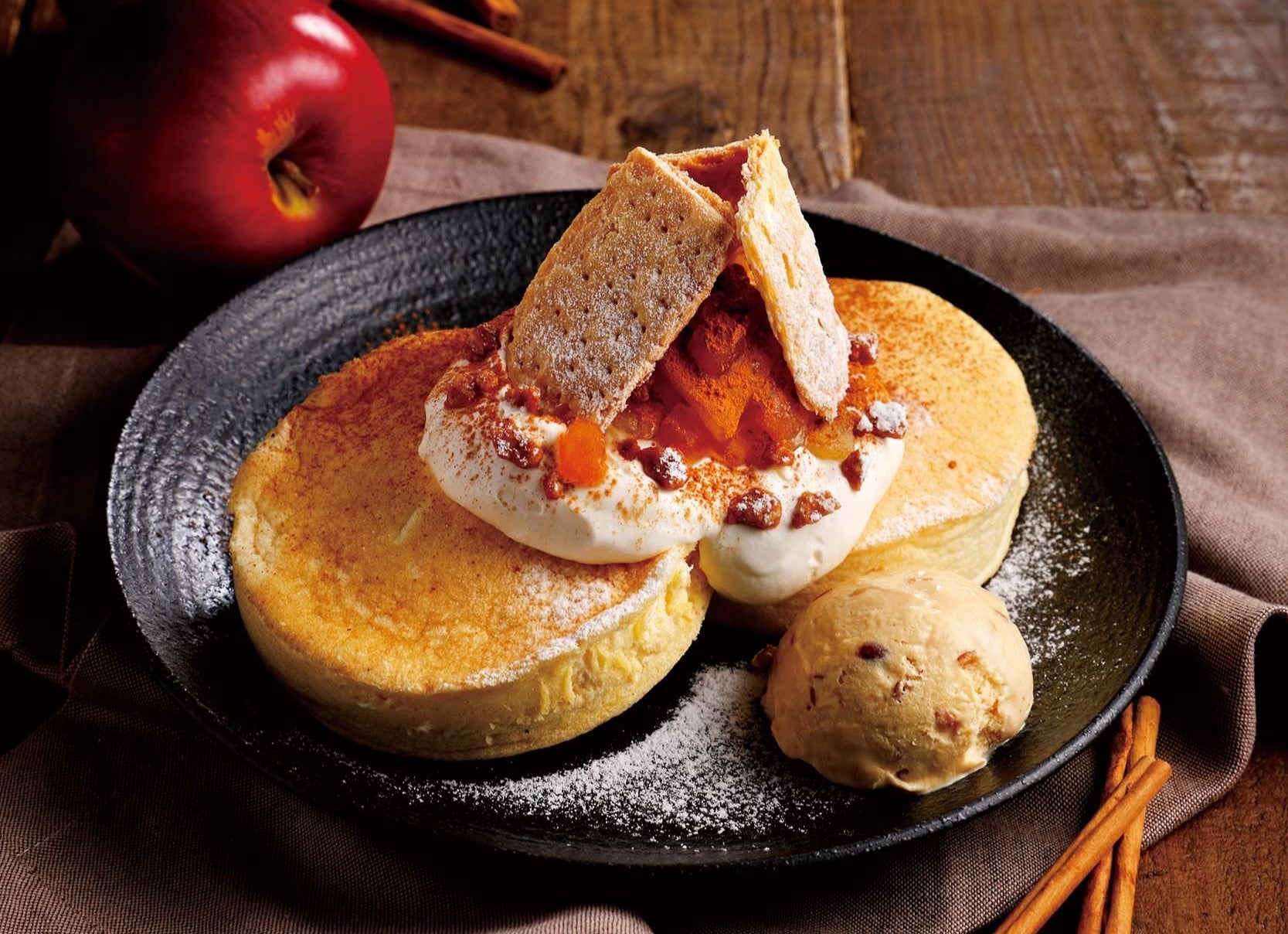 キャラメルナッツとアップルシナモンのパンケーキ 1,580円(税込)