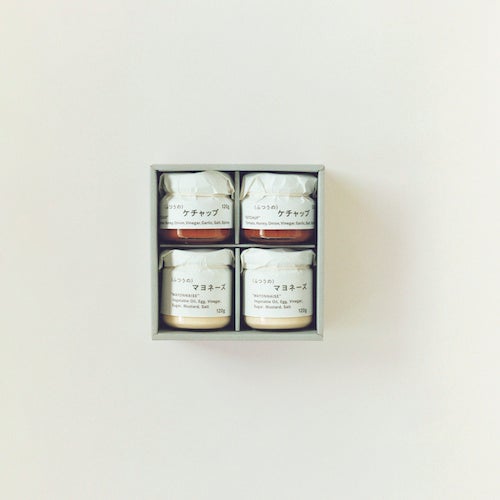 混ぜると、それは3つ目の調味料。素材の味を変えるのではなく、素材の味を伸ばす調味料。ふつうのマヨネーズと、ふつうのケチャップをセットでお届けします。単体でお使いいただくことはもちろん、2つを混ぜるだけで、いわゆるオーロラソースとしてお楽しみいただくことができます。セットならではの楽しみ方をぜひお試しください。
