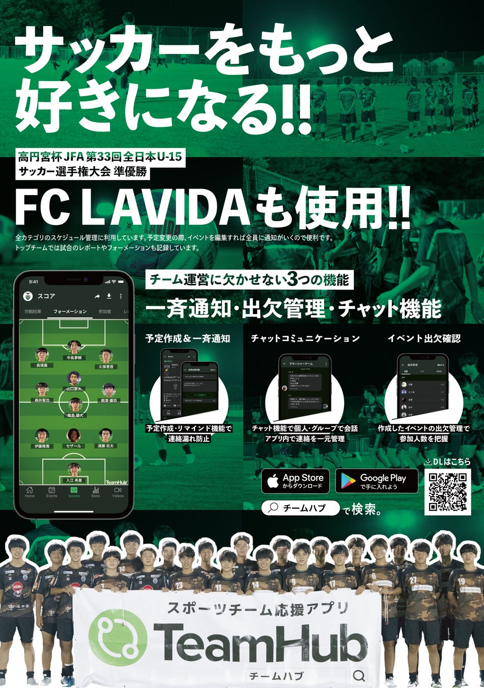高円宮杯 JFA 第33回全日本U-15サッカー選手権大会 準優勝!FC LAVIDA と新たにパートナーシップを締結!スポーツチーム応援アプリ「TeamHub」があなたのチームをサポートします