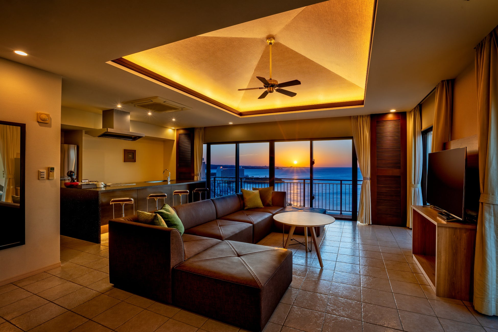 沖縄県屈指のリゾートエリアである恩納村の西海岸にある、全室オーシャンビュー、平均70㎡とゆとりのあるスイートルームの客室(全333室)を持つ沖縄リゾート。ホテル棟、コンドミニアム棟、アネックス棟の3棟を有し、豊富な部屋タイプも魅力の一つ。キッチンや洗濯機等が室内にある部屋タイプが多く、連泊ステイやお子様連れにもおすすめです。さらにベビー・キッズ用品や美容グッズなどバリエーション豊かな無料のレンタルアイテムを取り揃えており、充実したホテルステイをお過ごしいただけます。