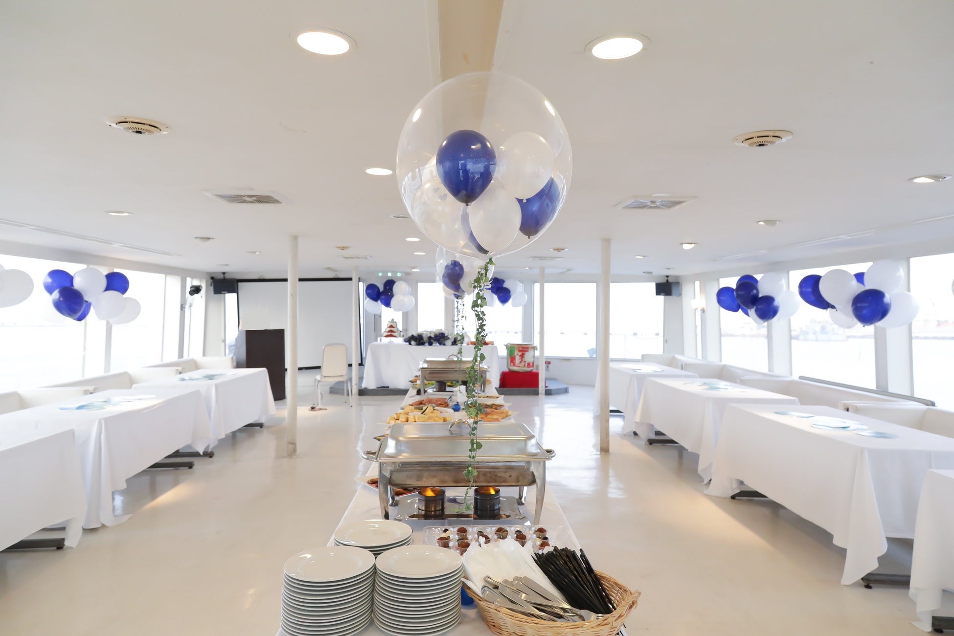 開放的な海の上の会場が貸切クルージング。船を1隻貸し切って、時間や演出、食事内容など、すべてを自由にカスタマイズできるので、企業のブランドイメージや参加者のニーズに合わせて、オリジナリティ溢れる忘年会を演出することが可能です。