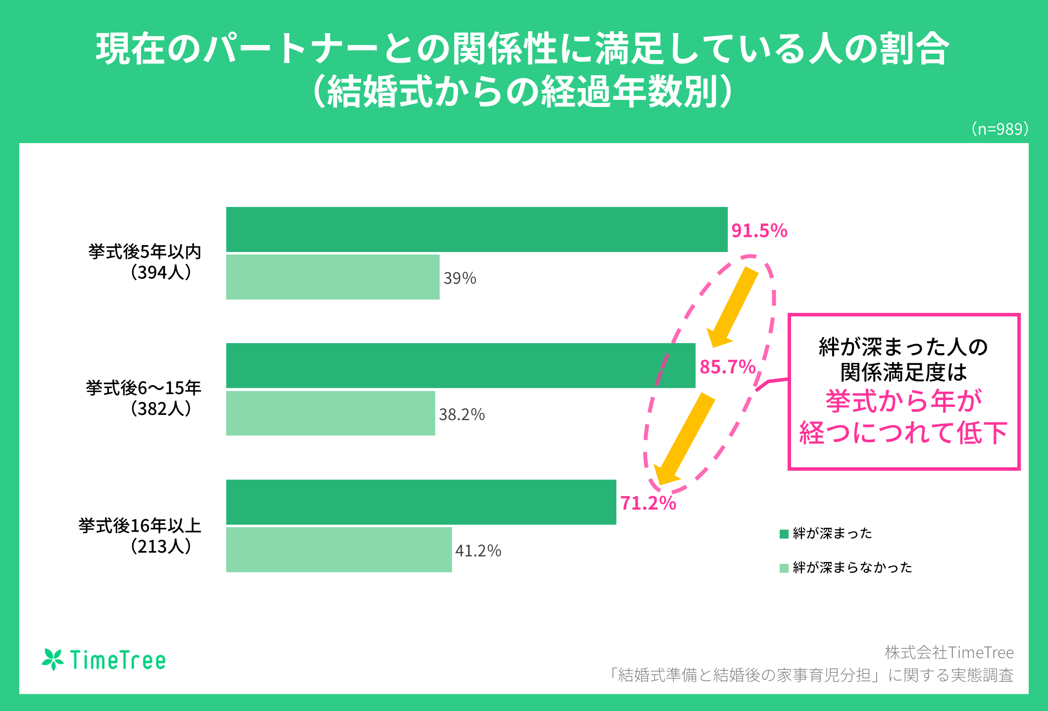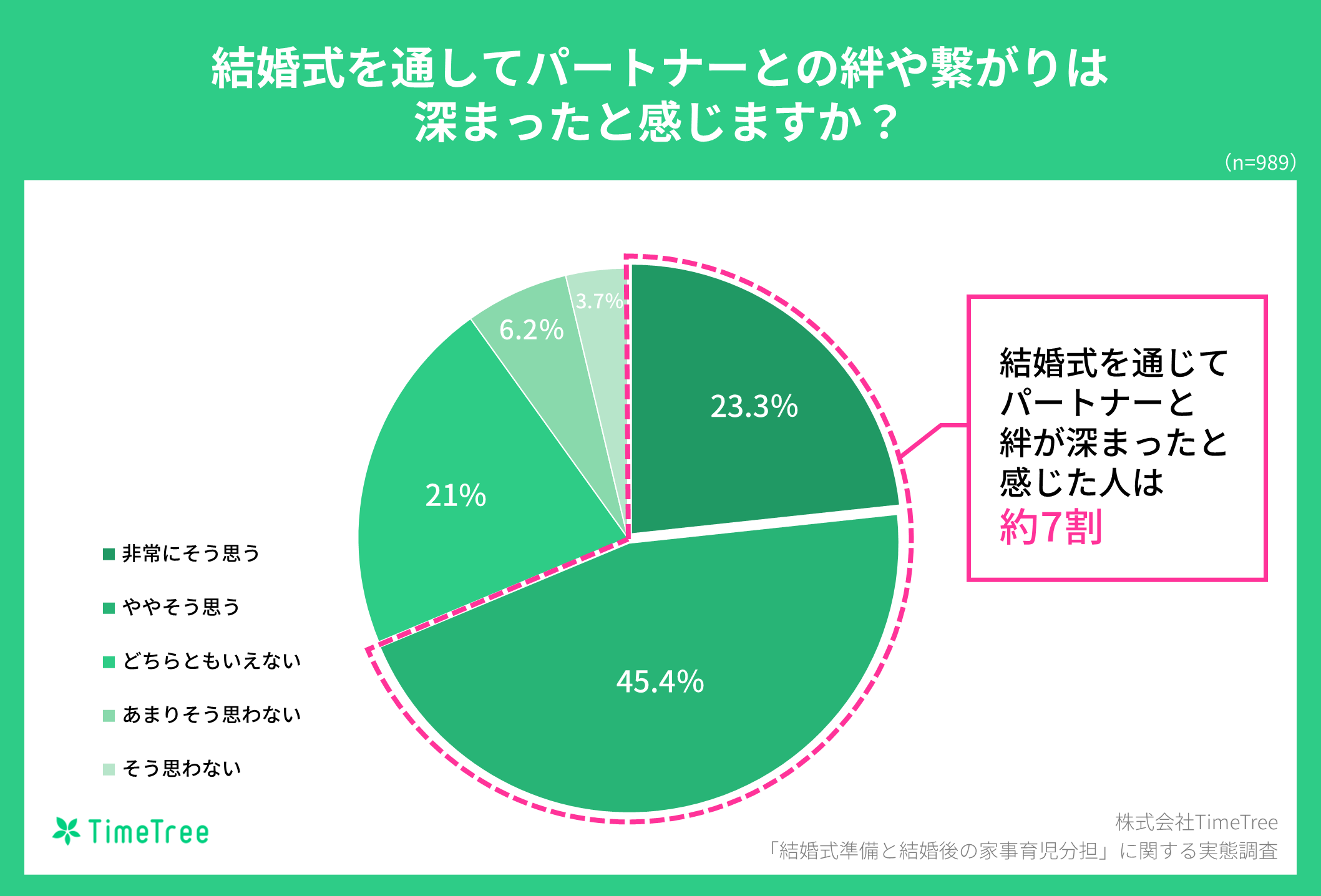 カレンダーシェアアプリ「TimeTree」(タイムツリー)を運営する株式会社TimeTree(本社:東京都新宿区、代表取締役社長:深川 泰斗)は、結婚式や結婚パーティーを行った経験のある全国20~40代男女989名を対象に「結婚式準備と結婚後の家事育児分担」に関する実態調査を実施しました。