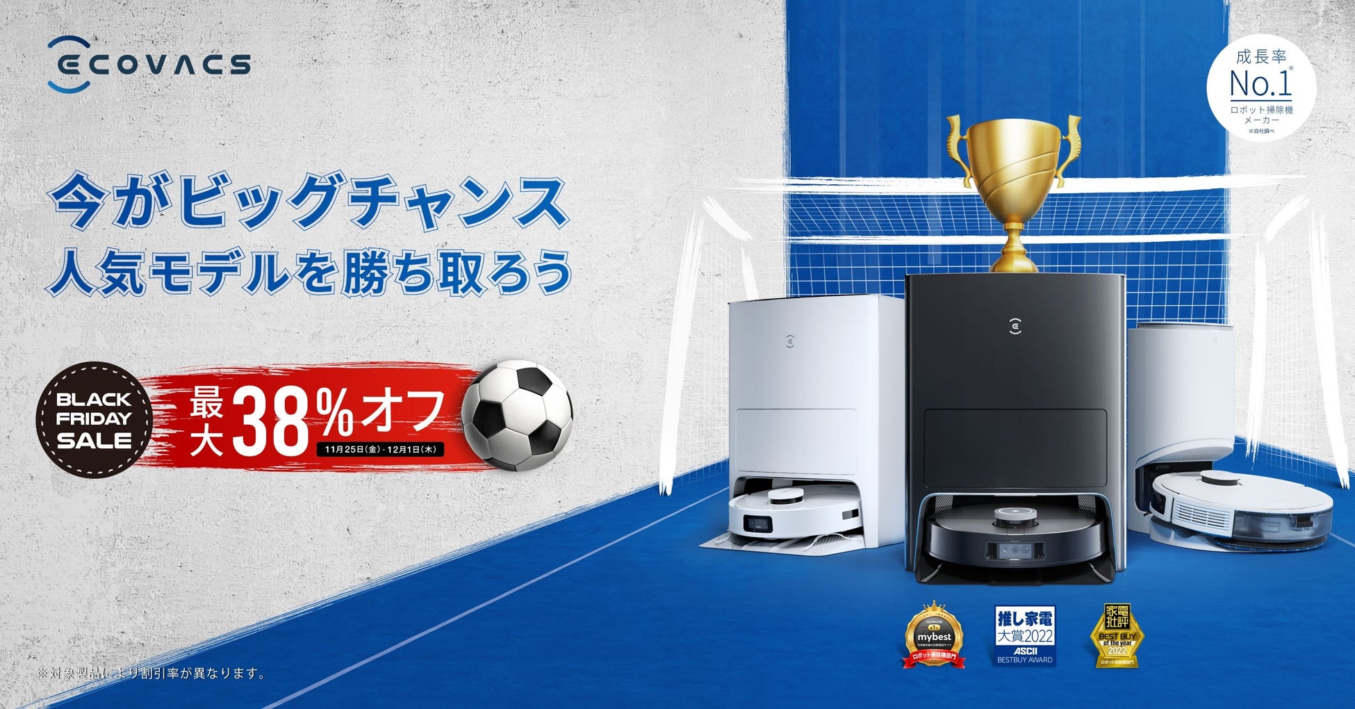 ロボットの研究開発、生産、販売を一体化した家庭用ロボットの総合メーカー・エコバックスジャパン株式会社(東京都品川区/代表取締役社長 坂梨文康)は、11月25日(金)0:00から12月1日(木)23:59までAmazon.co.jpで開催される「ブラックフライデー」セールに参加、人気製品が最大38%OFFとなる特別セールを実施いたします。