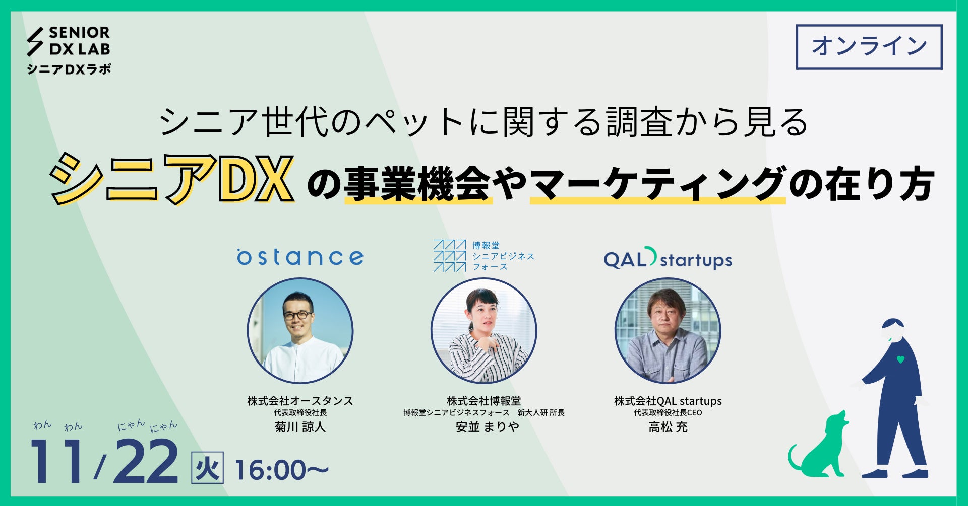 オースタンス×博報堂シニアビジネスフォース×QAL startups共同「シニア世代のペットに関する調査から見るシニアDXの事業機会とマーケティングの在り方」オンラインセミナー11/22(火)開催