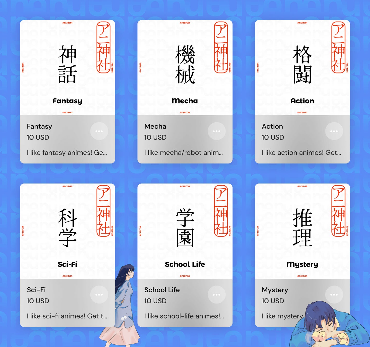 お気に入りのアニメのジャンルを象徴するNFTを手に入れて、特別なコミュニティに参加しましょう。ANIJINJAのメンバーシップNFTは、同じ世界観を持つ仲間たちとの交流の鍵となります。コミュニティ内では、同じ興味を共有する仲間たちと、お気に入りのアニメについて語り合ったり、クラブ内の様々な活動への参加が可能です。