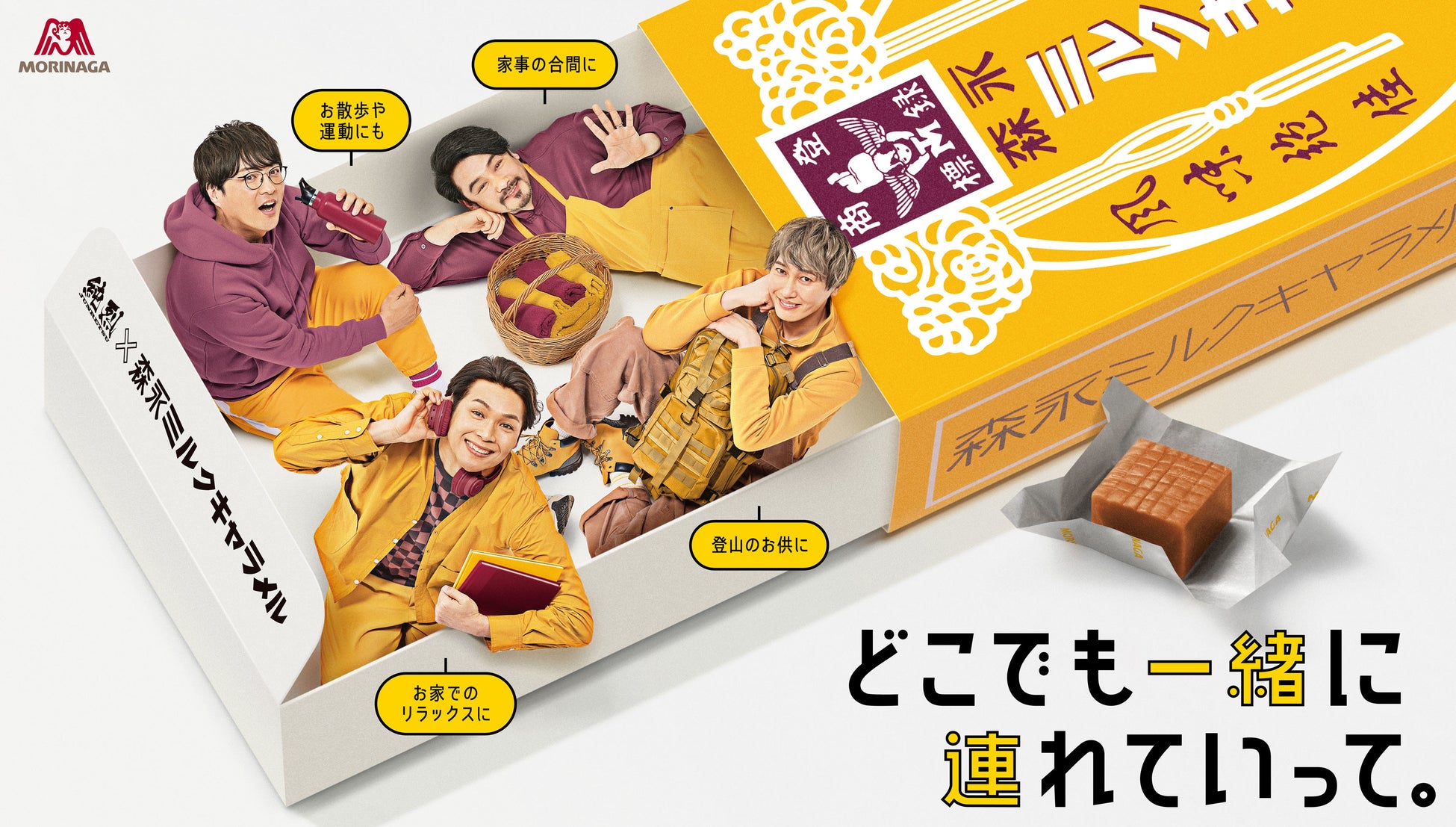 携帯しやすく、ウォーキング時や旅行時などのアクティブなシーン、仕事や家事の合間のほっと一息つきたいシーンなど、どんなシーンにもぴったりな「ミルクキャラメル」の魅力を「純烈」がお伝えいたします。