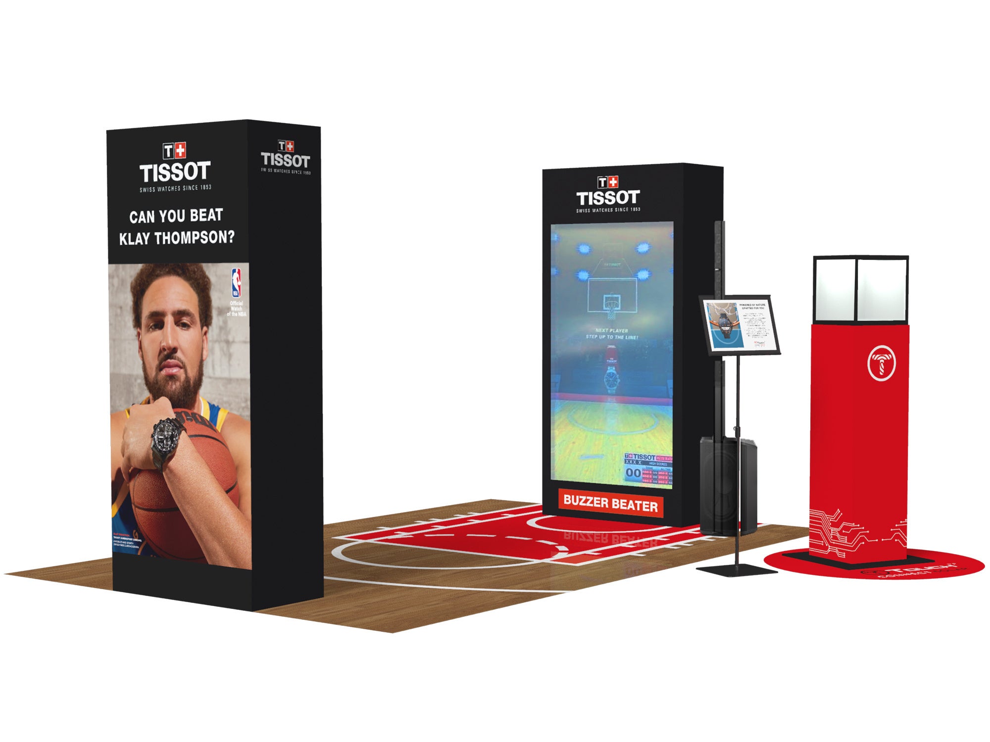 「クレイ・トンプソンに勝てる?」-このゲームでは24秒間に何本のシュートを決めることができるかを競います。フリースローラインに立つと、スクリーンの向こうに満員の観客の姿。プレイヤーを鼓舞するかのように歓声を轟かせています。さぁ、クレイのようにシュートを決めることができるでしょうか?ボール不要のインタラクティブゲームのため、よりクレイになりきってお楽しみいただけることと思います。ティソ ブティック銀座にお越しの際は、ぜひお立ち寄りください。