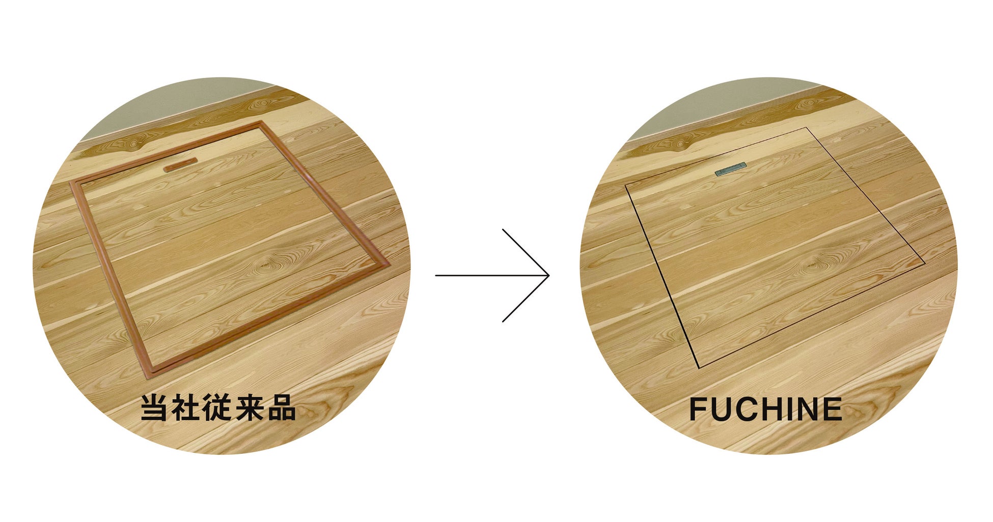 これまでの常識を覆す"フチ"のない高気密型の床下点検口「FUCHINE」に、熱貫流率0.34W/(㎡・k)以下の高断熱型が新たにラインアップ。