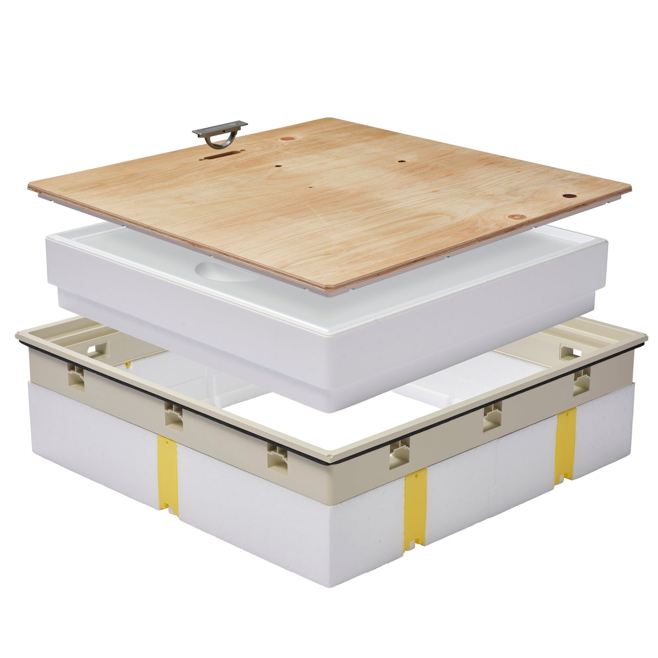 高断熱型では厚さ120mmの断熱フタを標準装備。床下点検の際は簡単に取り外せます。