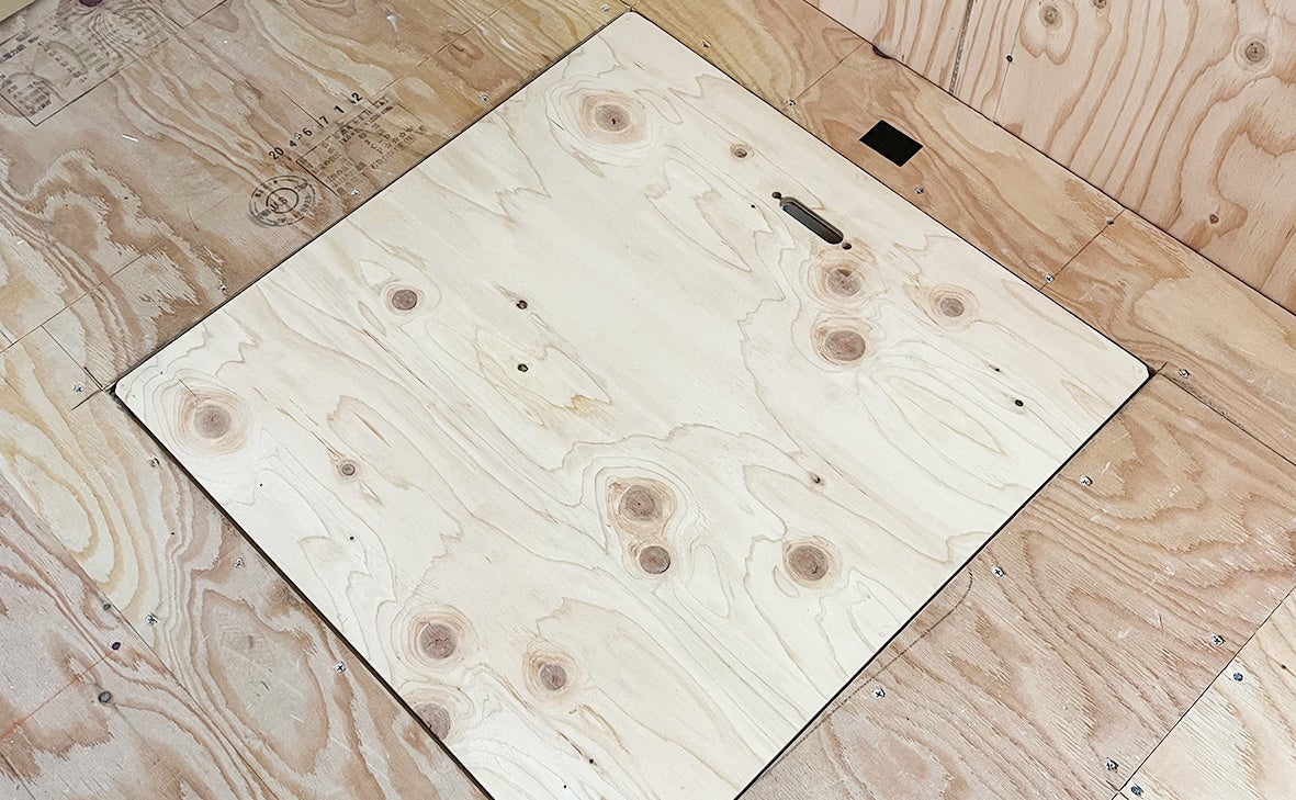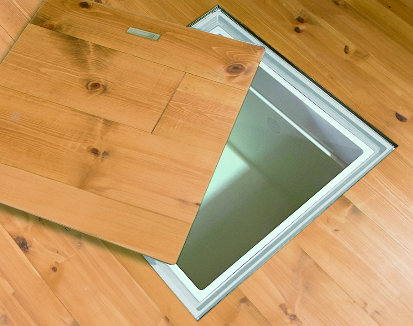 床仕上げ面に「点検口のフチ」という余計な存在を消した上で、必要時にはしっかり点検できる開口が欲しい。加えて、住宅に必要な気密性や、歩行感を損ねない耐荷重性能は確保したい。点検口の存在感は消しつつも、しっかりと機能を確保した、既製品の床下点検口のニーズがあると考え、開発にいたりました。