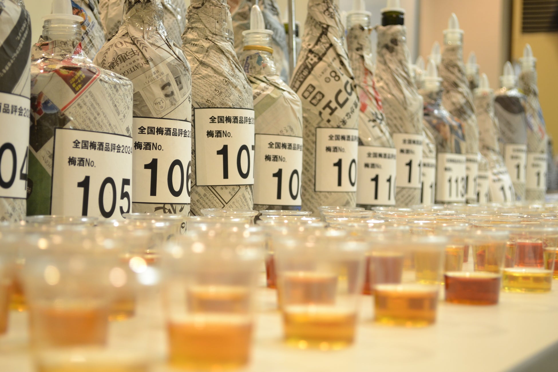 本品評会は梅酒の普及と振興・品質向上を目的として2015年より年に一度開催されており、第9回目となる2024年度は日本全国より99社165品の梅酒が出品、その中から50品が選出されました。