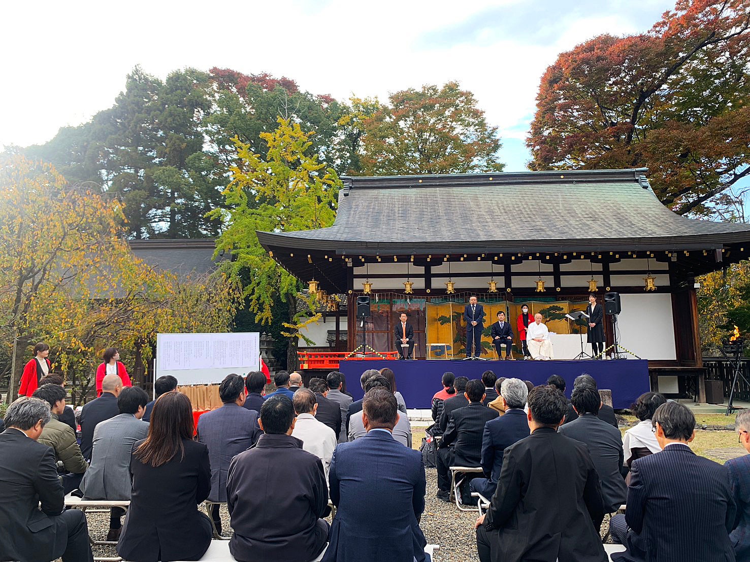 京都会場である北野天満宮は天神信仰発祥の地であり、日本中に12000社もあるといわれる全国天満宮・天神社の総本社。約350本の紅葉を有する名所「もみじ苑」の紅葉の風景は正に絶景。