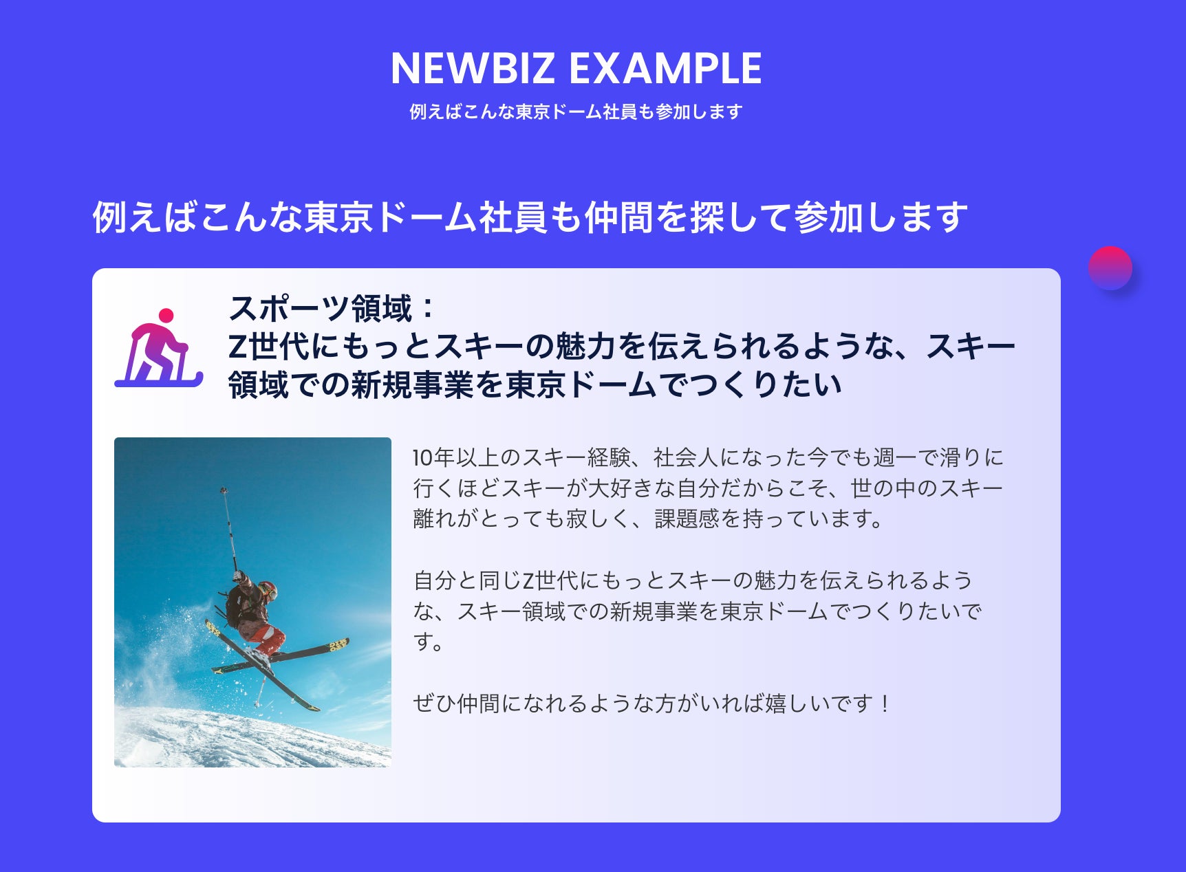 ・東京ドームでの新規事業開発にご興味のある方、新規事業応募に挑戦してみたい方