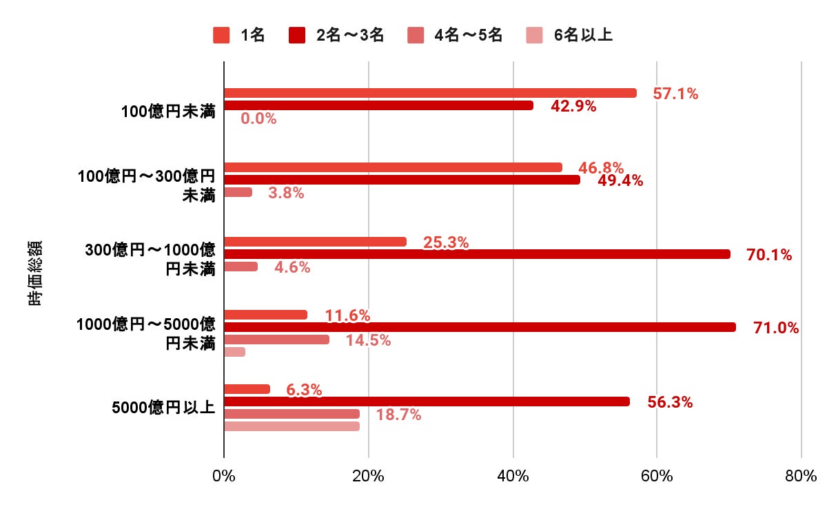 時価総額の大きい企業ほど、英文開示担当者も多い傾向