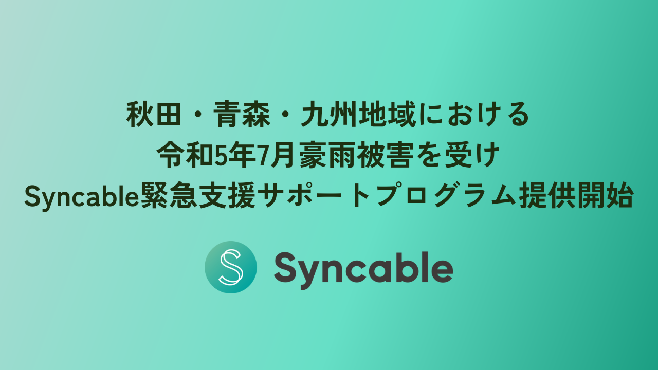 秋田・青森・九州地域の豪雨被害を受け、Syncable緊急支援サポートプログラム提供開始