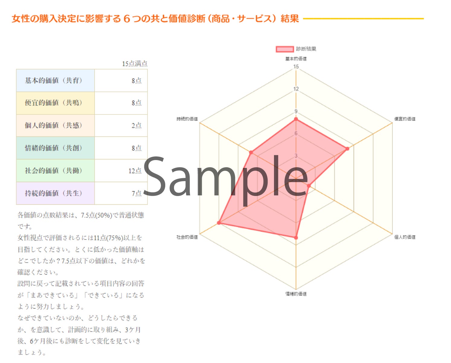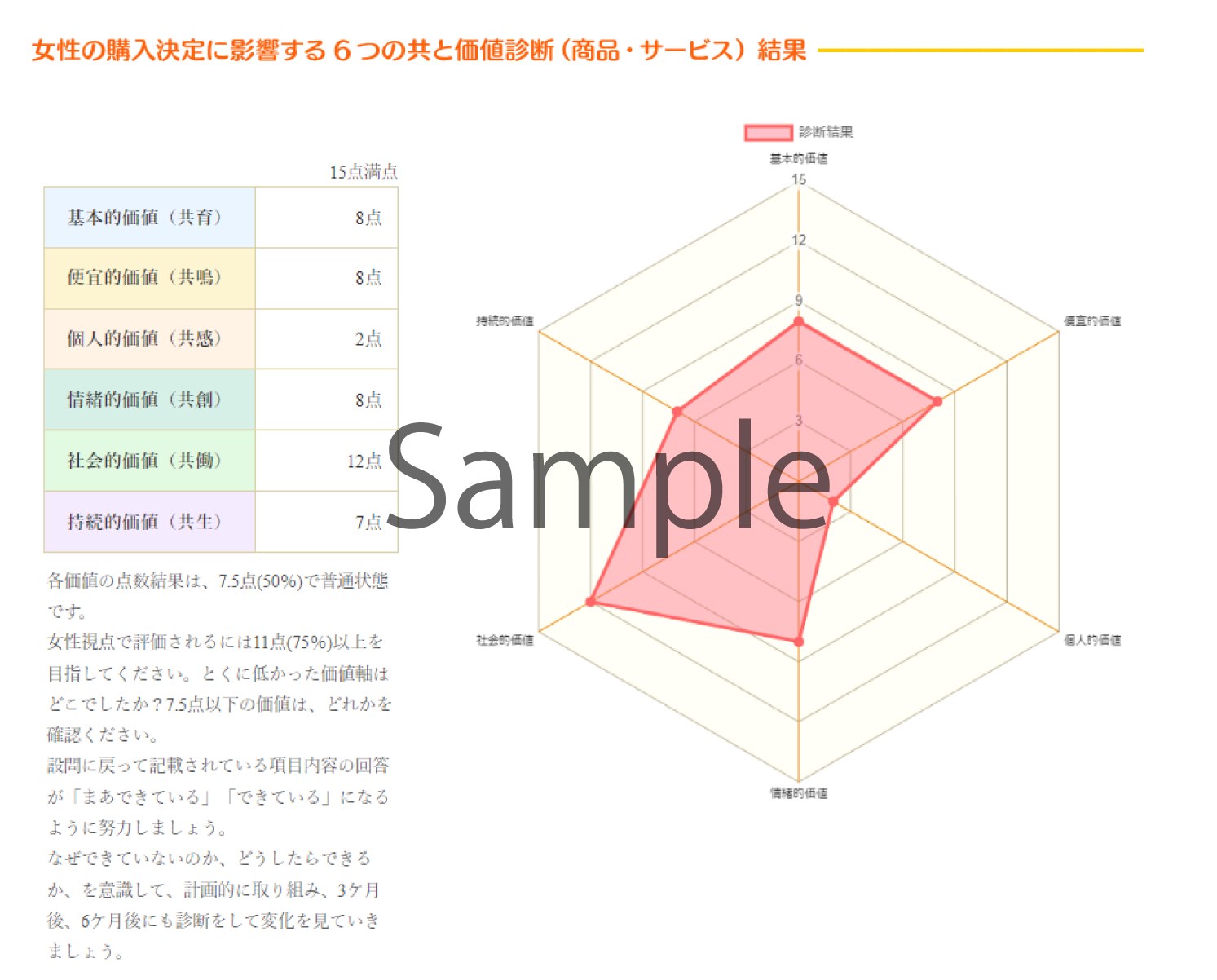 本セミナーでは、女性が商品・サービスを選ぶ際の「6つの共(価値)」に着目し、参加者の皆様がその場でご自身の商品やサービスを診断できる無料ツールを提供します。どの価値が不足しているのか、また、どのように強化すれば市場での成功が見込めるのかを明らかにし、即座にアクションに移せるよう具体的な解説を行います。