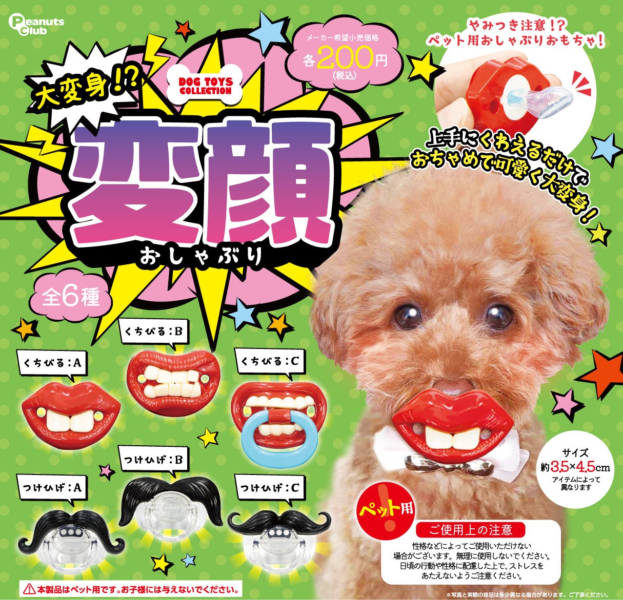 株式会社ピーナッツ・クラブ(本社・大阪府東大阪市、代表取締役社長・前田泰裕)は、ペット用おもちゃ入りのカプセルトイ『大変身!? 変顔おしゃぶり』を2024年8月下旬より順次、全国のカプセルトイ売場で販売します。1回200円(税込)。