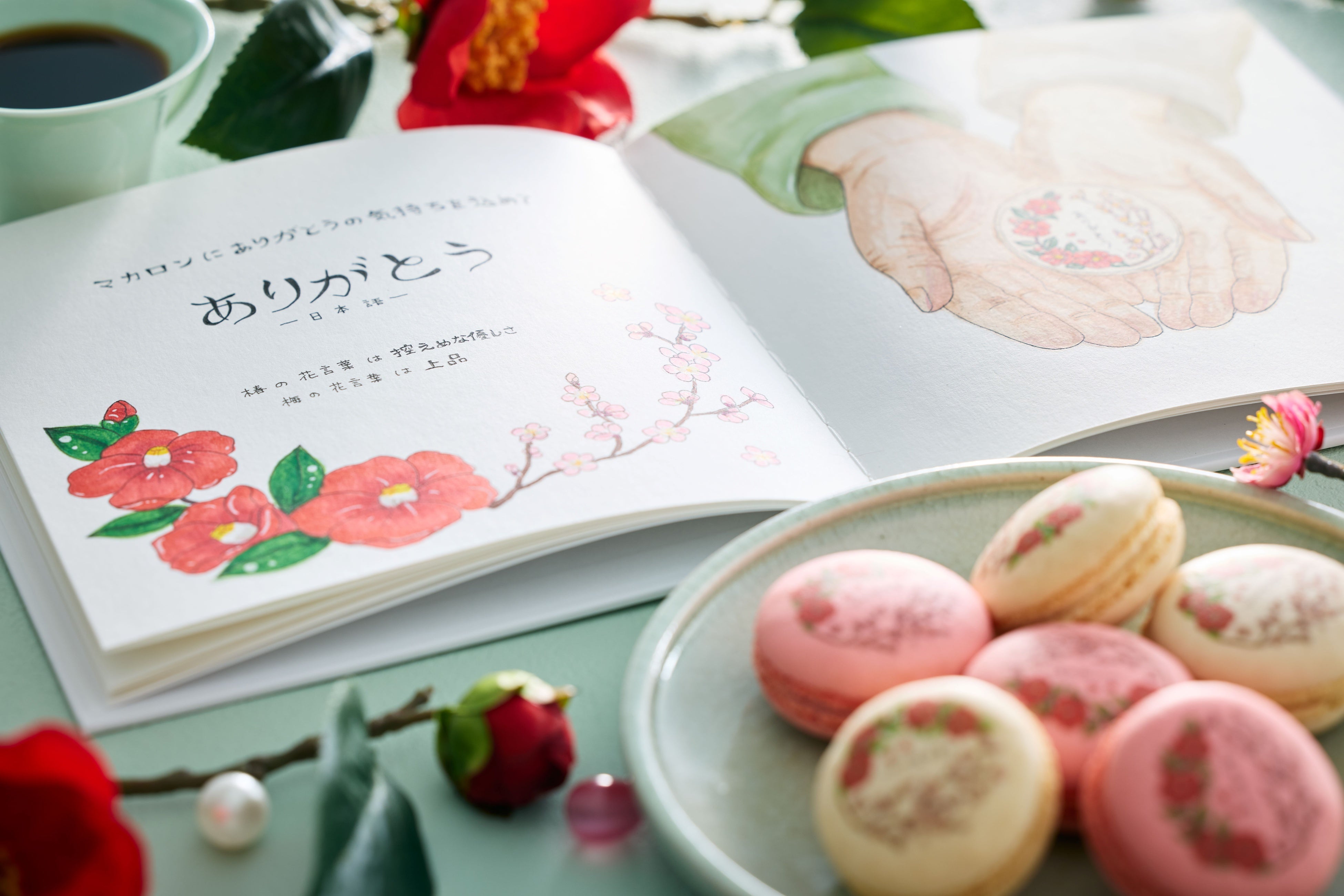また、感謝の気持ちを表す「ありがとう」の言葉を各国の言語でマカロンにデザインしています。