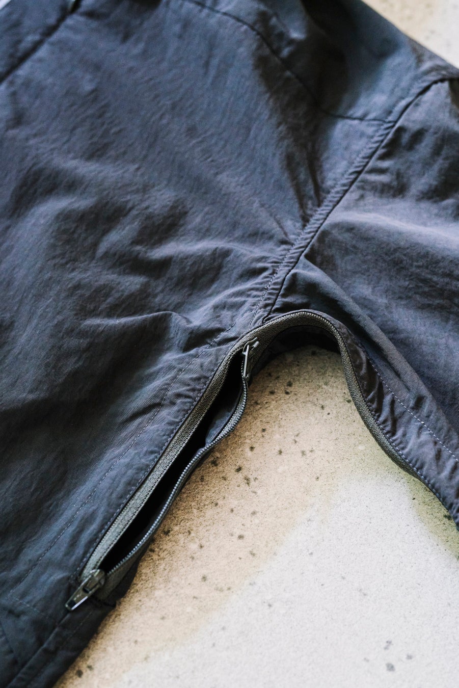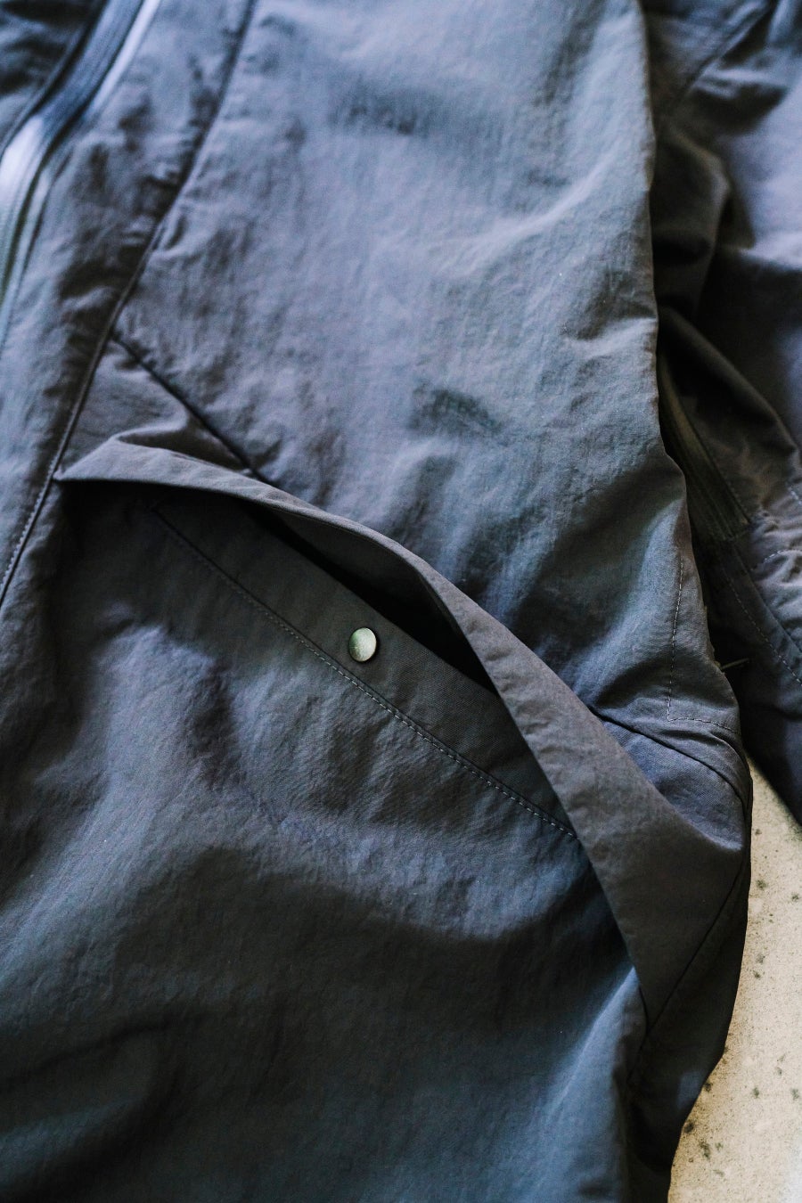 表地にはソフトな風合いと適度なハリ感が特徴のリサイクルナイロンを採用しています。撥水剤に使用される有機フッ素化合物(PFAS)を使わないC0(非フッ素)撥水剤を使用しているため、環境にやさしい素材です。メッシュ生地を随所に入れることにより、通気性、軽量化にも優れています。