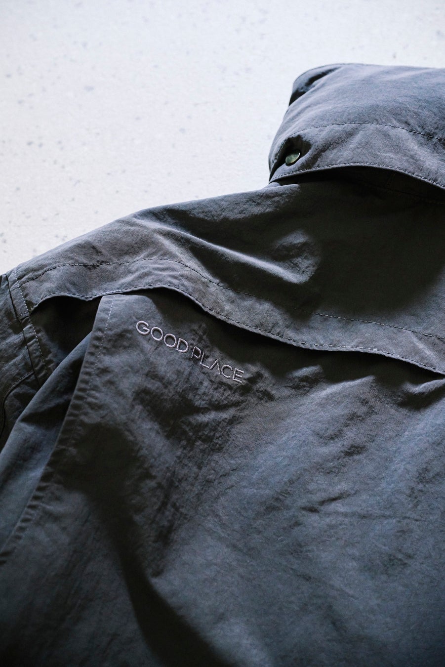 左肩背面と専用の収納袋には「GOOD PLACE」ロゴの刺繍が入っています。外出時に使用することを考慮し、生地カラーと同一色にしました。刺繍を入れることで統一感をもたらし、従業員同士の一体感を醸成します。ユニフォームの収納袋は、持ち運びや収納に適しています。