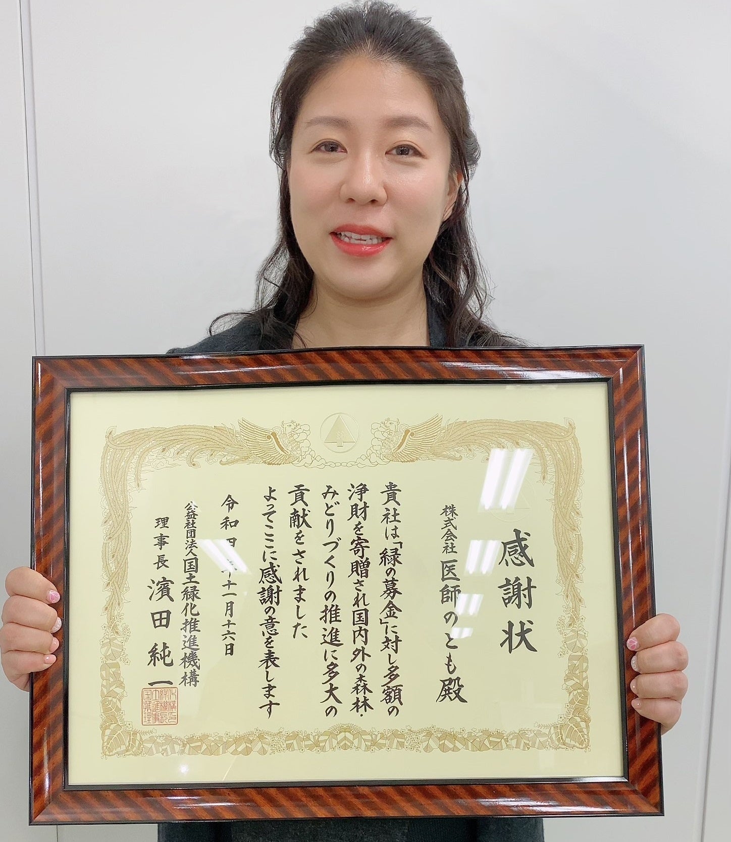 また、当社の売上の一部を公益社団法人国土緑化推進機構「緑の募金」に寄付いたしましたので、ご報告いたします。