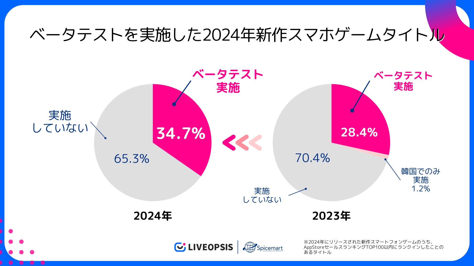 スパイスマート調査:2024年に新規リリースされたスマホゲームのベータテスト実施率は35%と昨年より増加