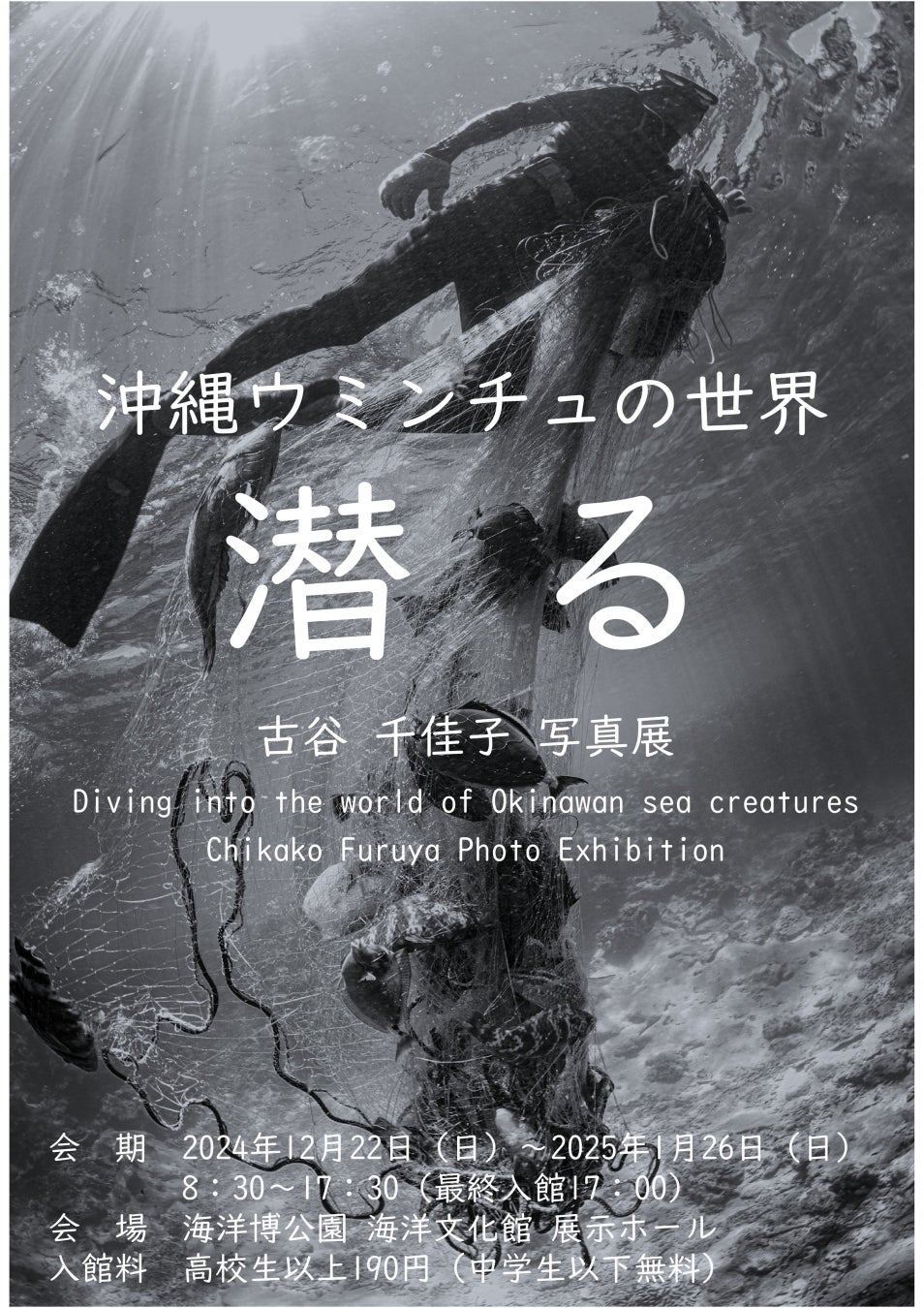 海洋博公園 海洋文化館では令和6年12月22日(日)~令和7年1月26日(日)に、企画展「古谷千佳子写真展 沖縄ウミンチュの世界“潜る”」を開催します。