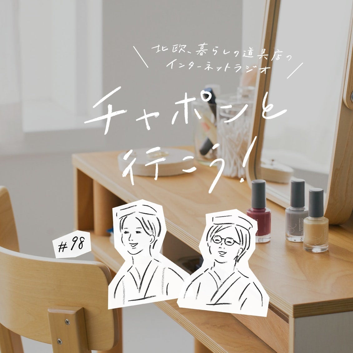ポッドキャスト番組「チャポンと行こう!」とは、当社取締役で「北欧、暮らしの道具店」店長の佐藤と、スタッフのよしべこと青木がお届けする、隔週日曜配信のインターネットラジオです。「人生に目標って必要?」「40代になった今、夢はある?」など熱いものから、「とにかくカゴが好き」「買ってよかったものランキング」など、一緒にお風呂に浸かっているような“チャポン”とゆるまるトークをお届けし、「チャポラー」と呼ばれるリスナー達からこれまで2,000通以上のお便りが届くなど、反響が大きい点が特徴です。