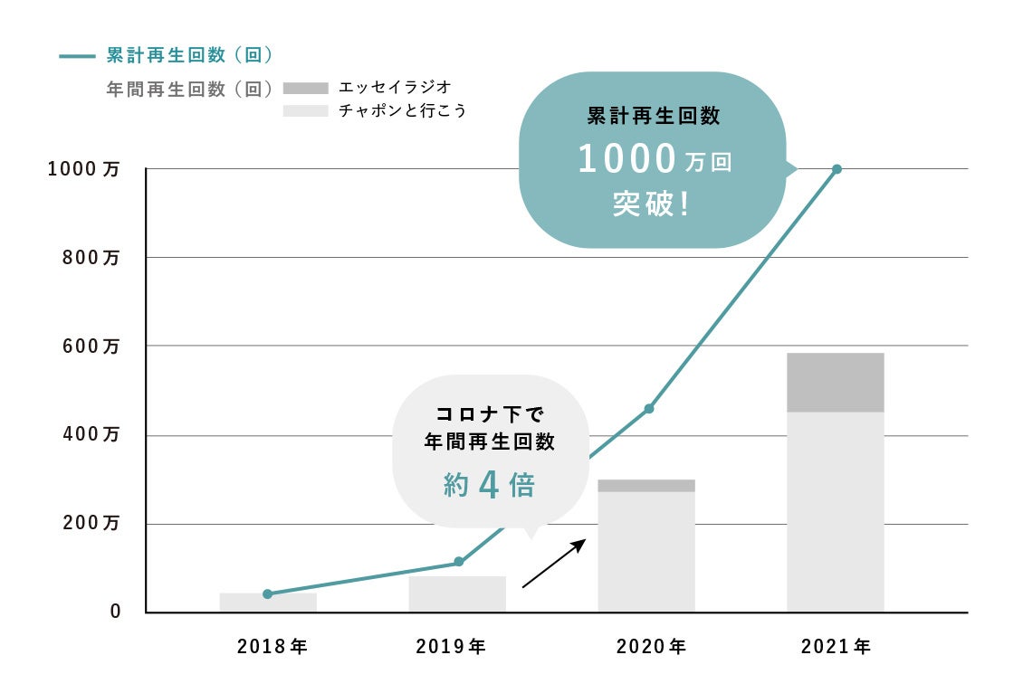 ※ 再生回数は、配信プラットフォーム(公式スマホアプリ、Apple Podcast、Spotify、Google ポッドキャスト、YouTube、SoundCloud)の総数。Amazon Musicは集計システムがないため含まず。