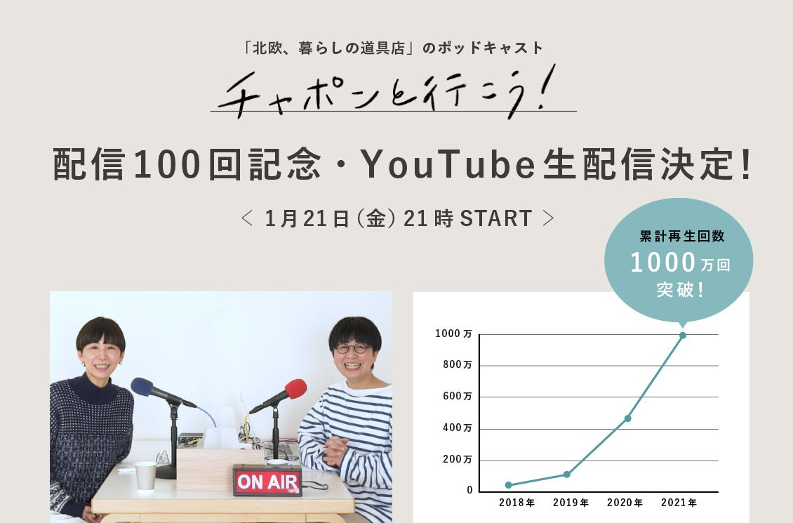 「北欧、暮らしの道具店」ポッドキャスト、総再生回数1,000万回突破。配信100回記念で、YouTube・インスタ生配信を1月21日(金)21時スタート