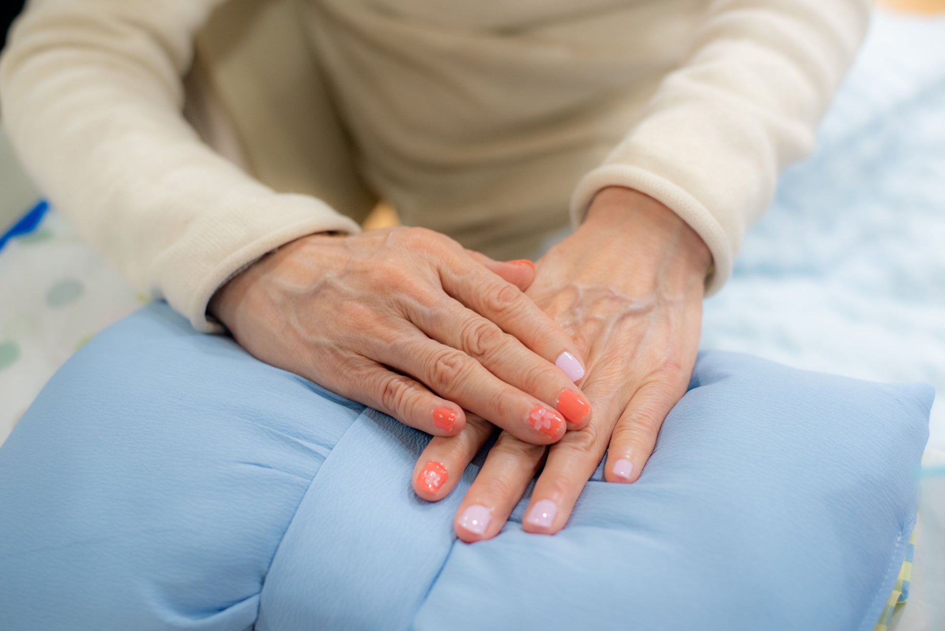・【行動変容】 コミュニケーションが困難だった要介護4の高齢者が、自らネイルの色を選択・希望を伝えるといった主体性を回復(事例①)