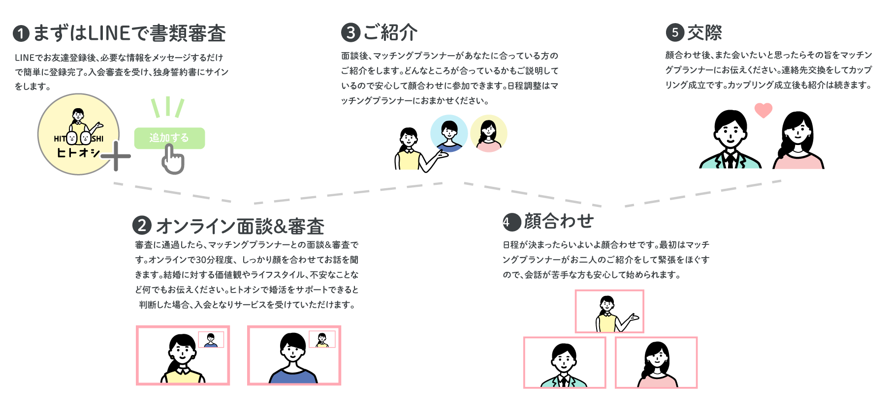 紹介型マッチングサービス「ヒトオシ」:https://hito-oshi.com/