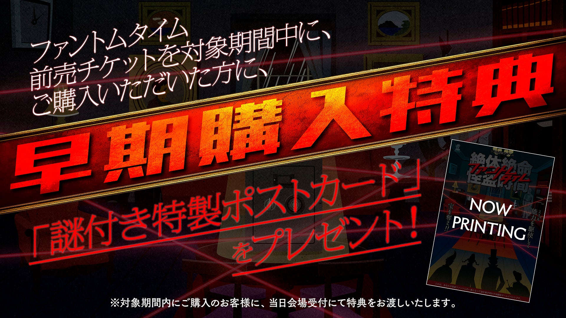 「ファントムタイム -絶体絶命怪盗時間-」全国ツアーでは、早期購入特典として、各都市の公演開催日より2ヶ月前までのご購入で、「謎付き特製ポストカード(非売品)」を、当日会場受付にてプレゼント!