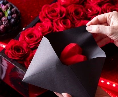 お席へご案内後、まずはナッツやシリアルを使ったクランチーなチョコレート「ルージュ・インビテーション」を提供いたします。ビュッフェスタートまでの間、テーブルで写真を撮りながらお楽しみいただける素敵なウエルカムスイーツをご用意いたしました。チョコレートで一枚づつ花びらを作り上げた大きなローズがのったケーキ「ローズフォー・ユー」は、梨のゼリーをダークチョコレートムースで包んだ、滑らかで優しい味わいの一品。シャキシャキ感の残る梨も印象的です。ハートがかわいい「1/2ルージュ」は、赤ワイン(*注)の風味といちじくの独特な食感が楽しめるケーキ。対をなす「1/2ブラック」は、コーヒーとキャラメルムースのコンビネーションを味わっていただけます。また、いちご、ライチ、ローズの香りが次々と口の中で広がる「トライアングルハート」、サワークリームを使ったレアチーズケーキとプラムゼリーが印象的な「深紅のローズテーブル」など、個性豊かなケーキが揃います。他にも、自家製アプリコットジャムを使ったクラシックなチョコレートケーキ「インプレッシブ・トルテ」、酸味をきかせた「栗とカシスのスモールボール」や、リコッタチーズがアクセントになる「モザイク・アップルタルト」、まろやかな「パンプキンプリン」、ベリーをのせた「ブラックフィナンシェ」、米粉を使ったグルテンフリー「ピーカンナッツマフィン」と「黒糖クグロフ」など豊富に取り揃えています。(*注)ケーキはアルコールフリー