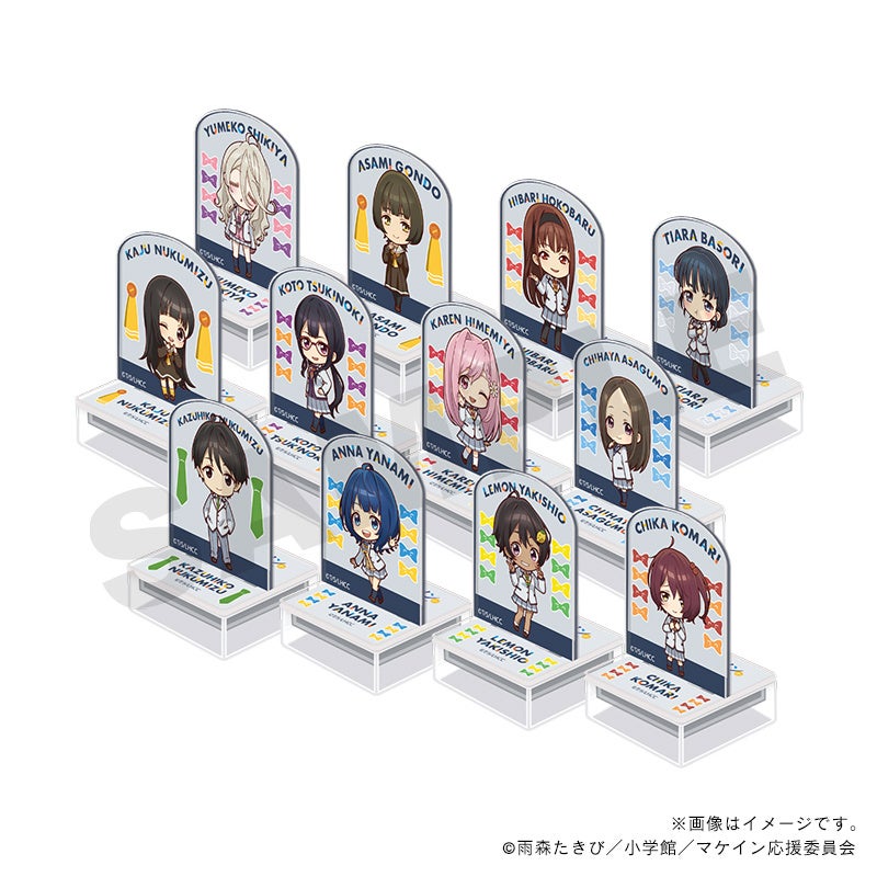 第1弾、第2弾でご好評を頂いていた夏制服ミニキャライラストに続き、冬制服に衣替えしたミニキャライラストの八奈見杏菜たちが新グッズにラインナップします。夏制服で登場した9キャラクターに加え、権藤アサミ、放虎原ひばり、馬剃天愛星も新たに仲間入りし、より多くのキャラクターの魅力をお楽しみいただけるよう、大幅にパワーアップしました。ラインナップは定番のアクリル系雑貨に加え、特別種がランダムに入った缶バッジBOXが登場。開けるまでどのキャラクターが出るかわからない、コレクションのワクワク感もお楽しみいただけます。