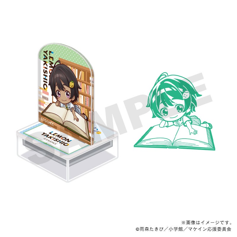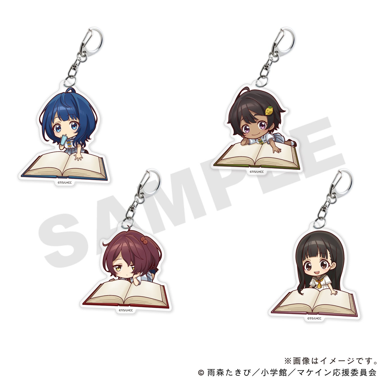 限定グッズでは、負けヒロインの八奈見杏菜、焼塩檸檬、小鞠知花と温水佳樹を加えた4キャラクターが、オリジナルイラスト「読書ミニキャラver.」として登場。書店ならではの特別なイラストで仕上がったアクリルグッズや缶バッジをお楽しみください。