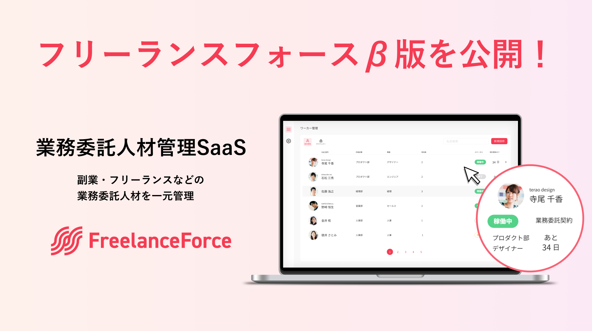 これまでは株式会社シューマツワーカーの顧客企業を中心に、限定的に提供してきましたが、本日より全ての業務委託管理に課題を抱える企業に向けて、β版の提供を開始することといたしました。