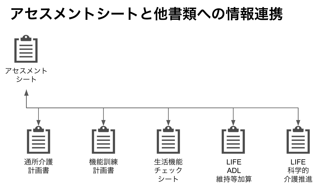 - アセスメントシート⇔通所介護計画書の整合性を担保