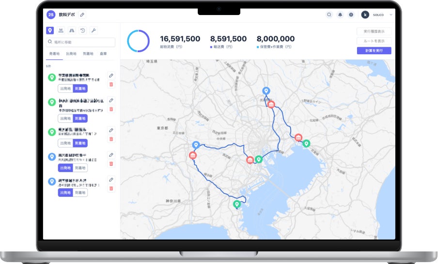 倉庫シェアリングのsouco、2024年問題の対策として最適な中継拠点算出システムをリリース