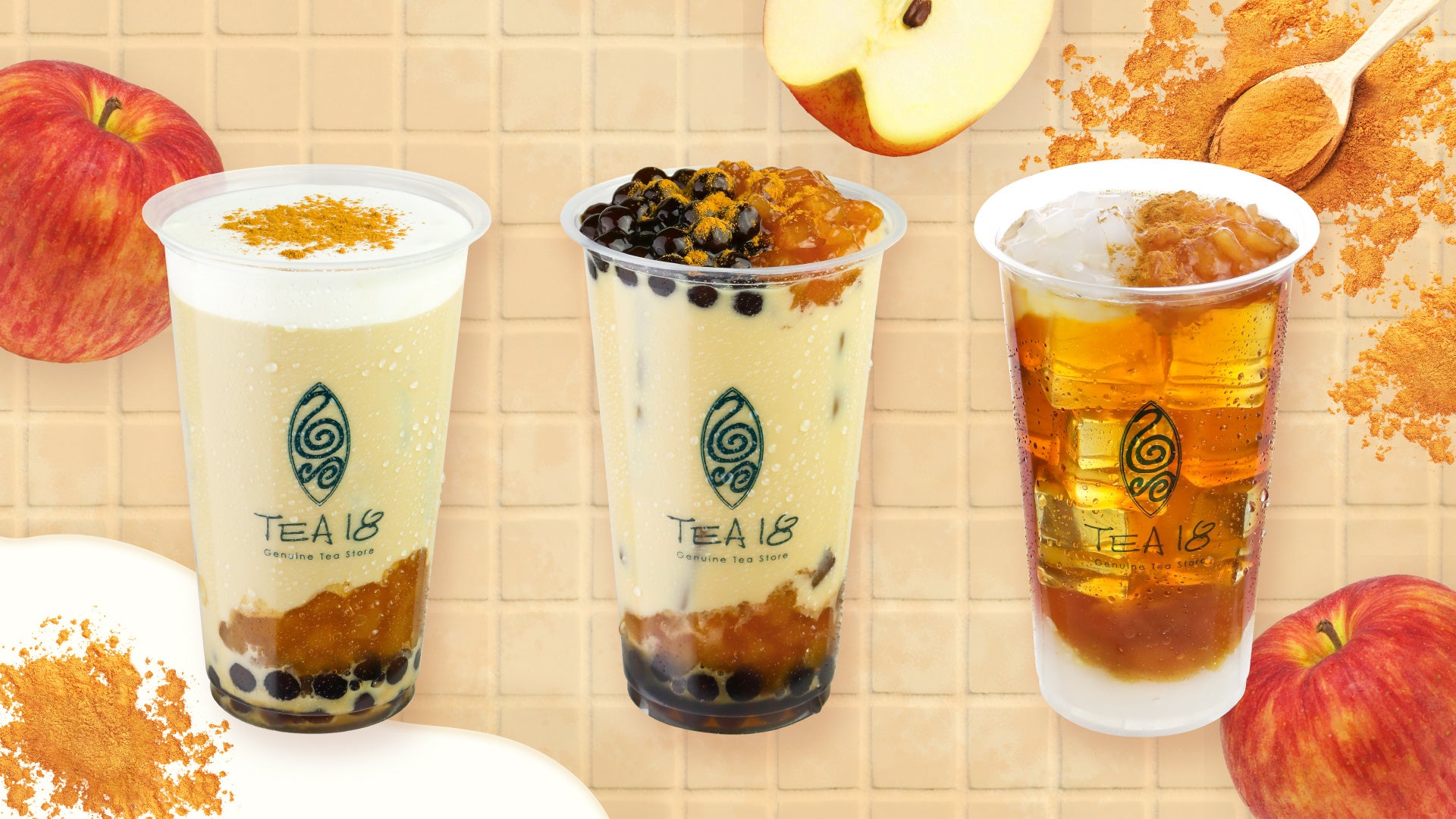日月潭紅茶を使用したTEA18オリジナル「TEA18ミルクティー」に、シナモンの風味豊かな林檎果肉とセイロンシナモンパウダーをトッピング!