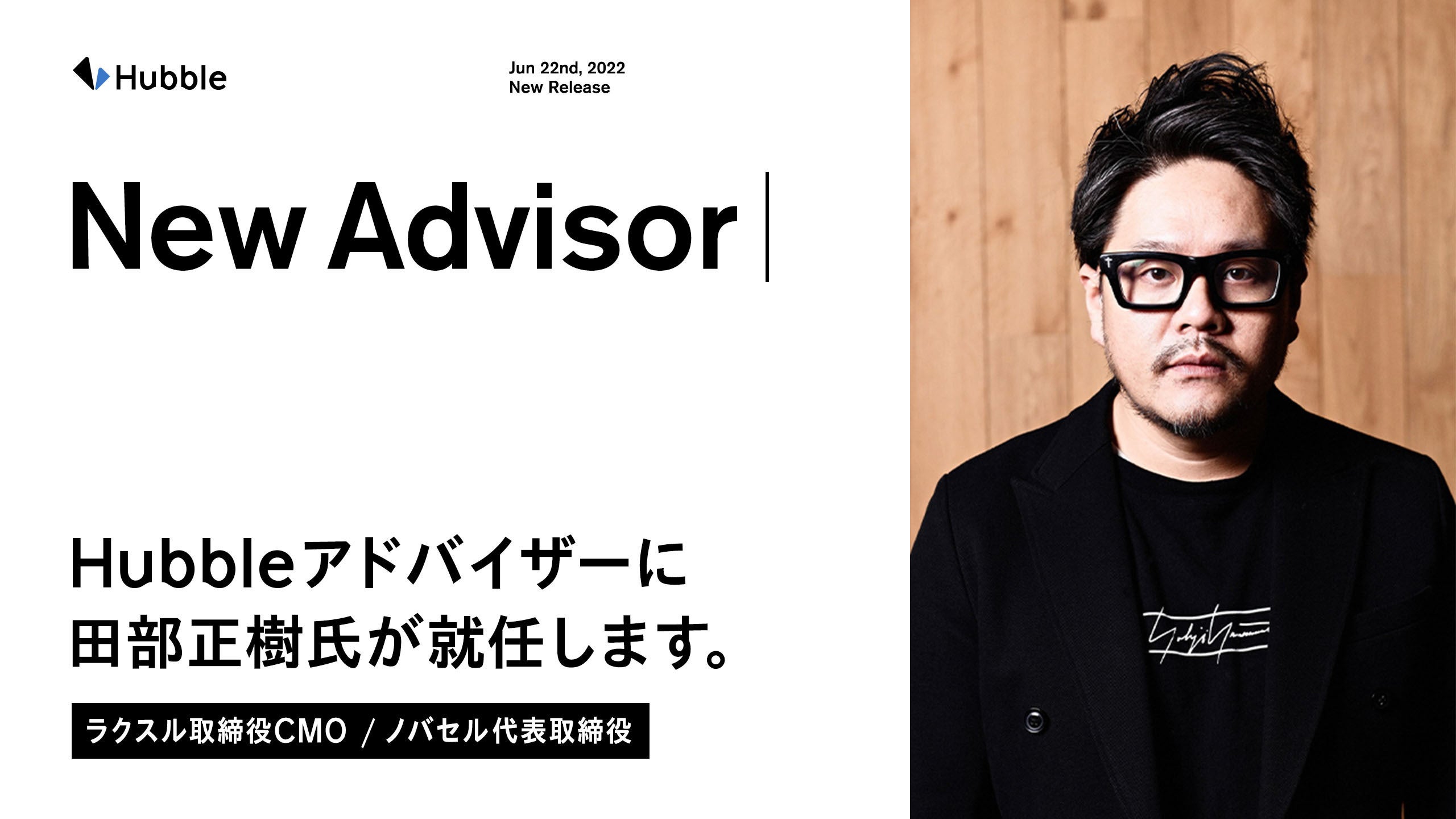 ラクスル取締役CMO/ノバセル代表取締役の田部正樹氏が、Hubbleのアドバイザーに就任