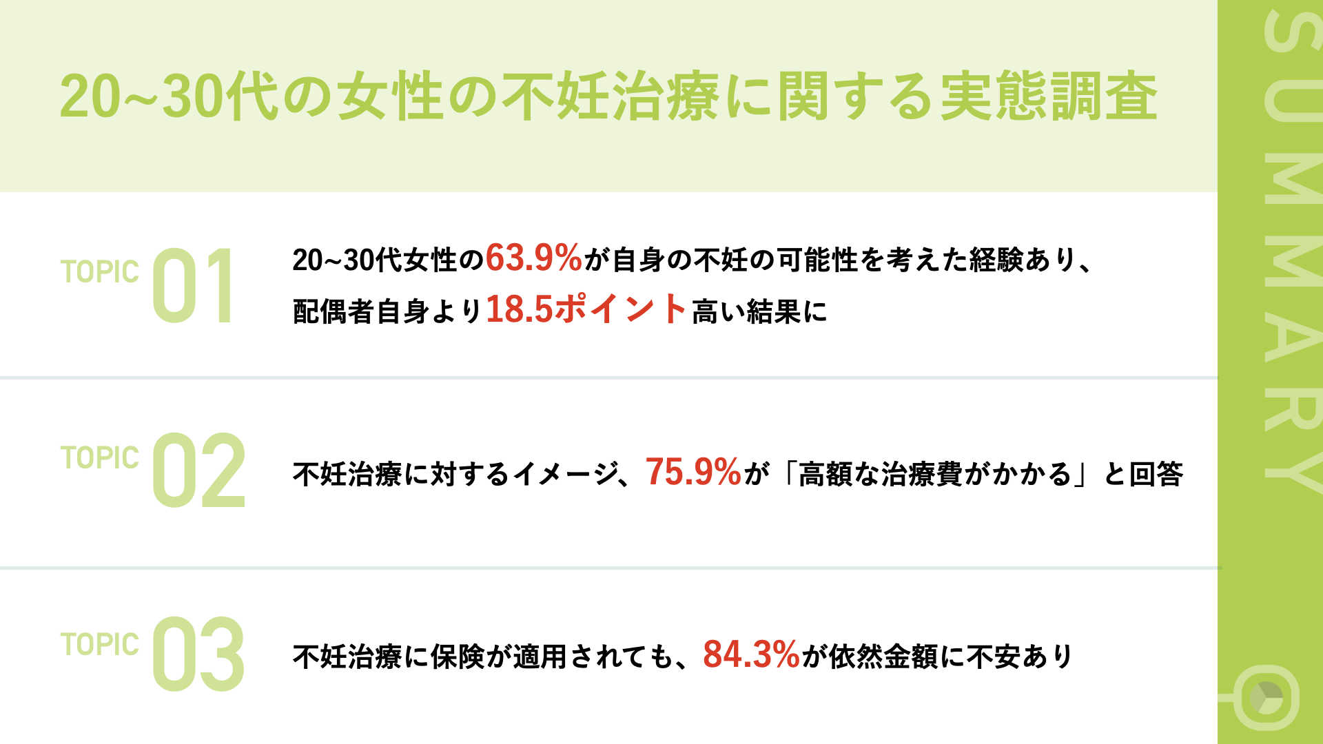- 20~30代女性の63.9%が、自身の不妊の可能性を考えた経験あり