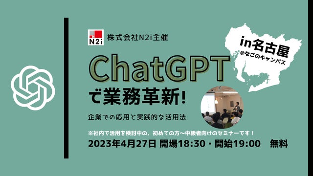 【N2i】「ChatGPT」で業務革新!in 名古屋 を4月27日になごのキャンパスでオフライン開催!