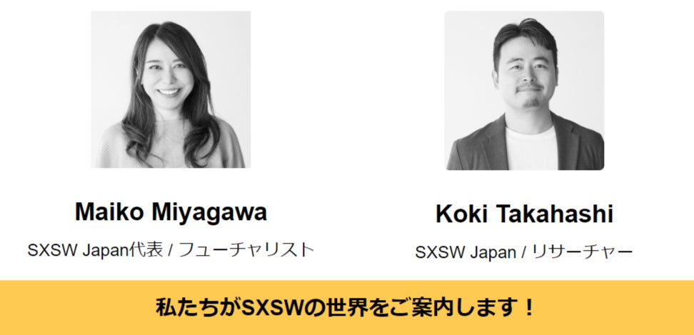 10月より公式ニュースレター「ROAD to SXSW」by SXSW Japanの配信を開始しています。来年3月に向けてのラインナップ発表等の最新情報や、これまでのSXSWでの印象的な場面等を振り返り、SXSW Japanの宮川と高橋が日本の皆さんにSXSWの魅力を発信します。ニュースレターの購読は下記フォームから無料でご登録いただけます。