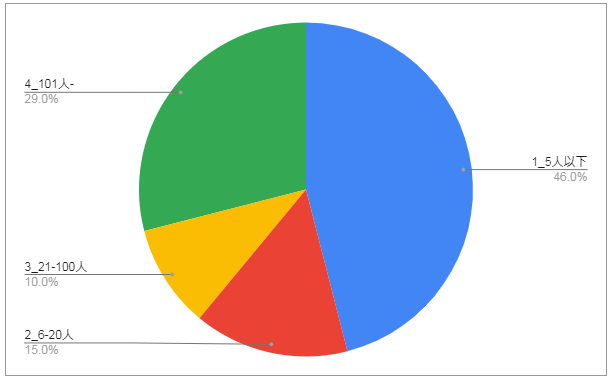 従業員数については下記の状況となっています(N=100)