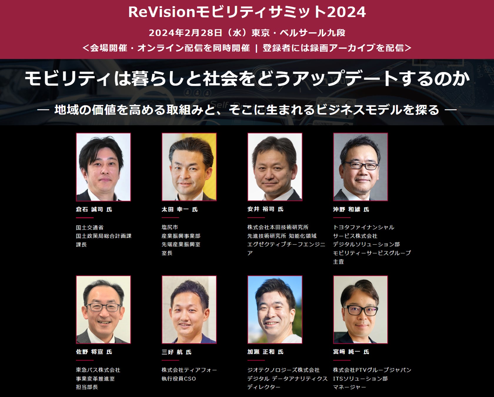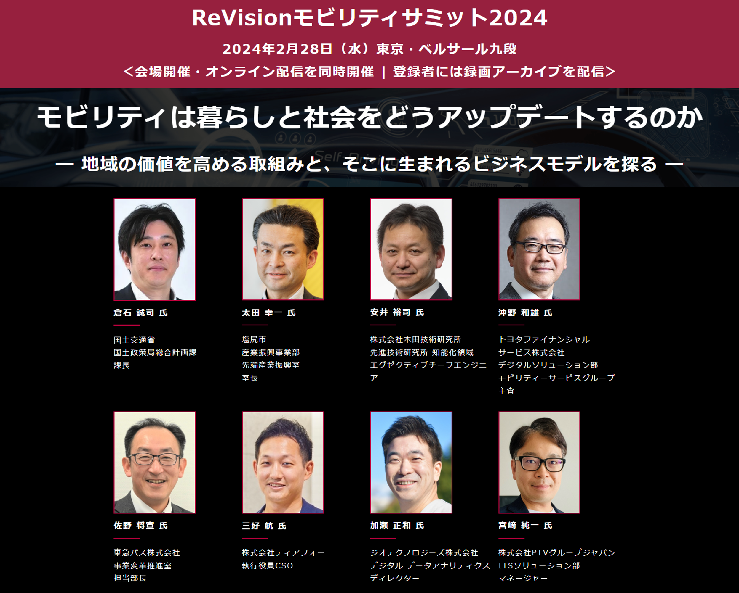 国交省、ホンダ、塩尻市、トヨタファイナンシャルサービス、東急バス 他から講演多数 『ReVisionモビリティサミット2024』 2月28日開催