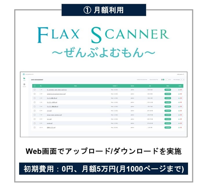 【月 額】 5万円(税別)※月1000ページ(1,000画像)まで。