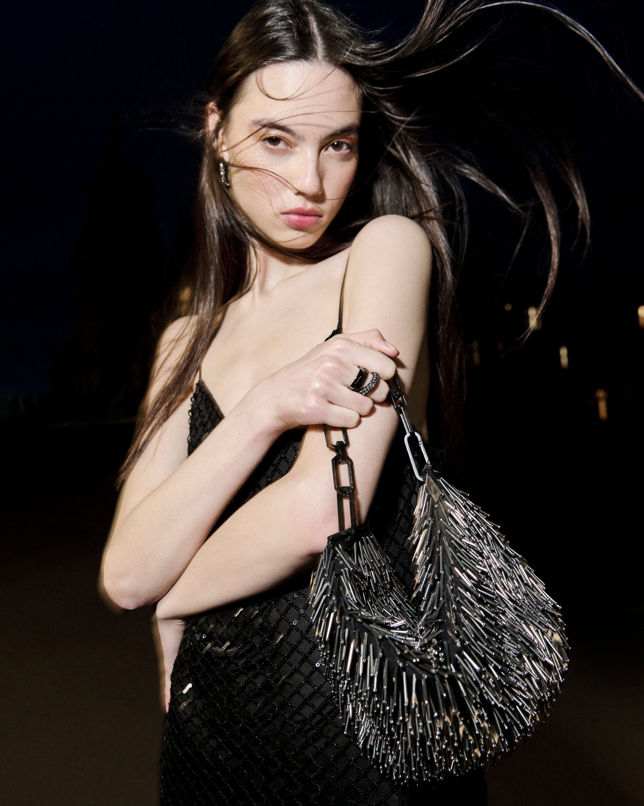 後半は、優美で穏やかなムードが漂った、豊かなレイヤリングスタイルで構築したクワイエットラグジュアリーに転換。そして、新しい一年を迎えるためのトランジショナルで華やかなスタイルを想起させます。